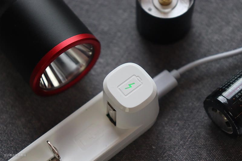 配备的专用充电器采与自带MircoUSB充电线配合,即可随时通过市电或充电宝为26650电池续命,让极蜂F10在长途旅行中也能持续完成照明使命。