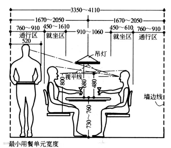 餐厅里不可或缺的两件家具就是餐桌椅,为了避免买错尺寸,造成餐厅太挤或餐桌不实用,餐桌和空间之间的尺寸关系,可以参考下图: