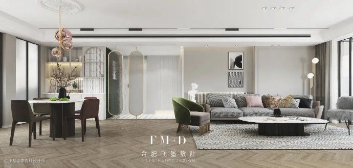 此外,如果你家的客厅不准备放传统的“沙发+茶几+电视”,那么也要控制好家具的尺寸,留出充足的空间来活动。