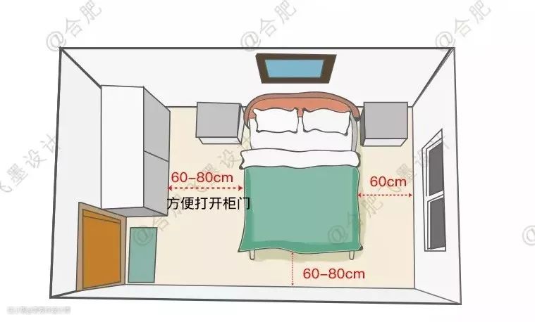 所以,在卧室设计的时候,一定要考虑空间大小与家具大小,床与衣柜床头柜保持充足的距离才能更舒适: