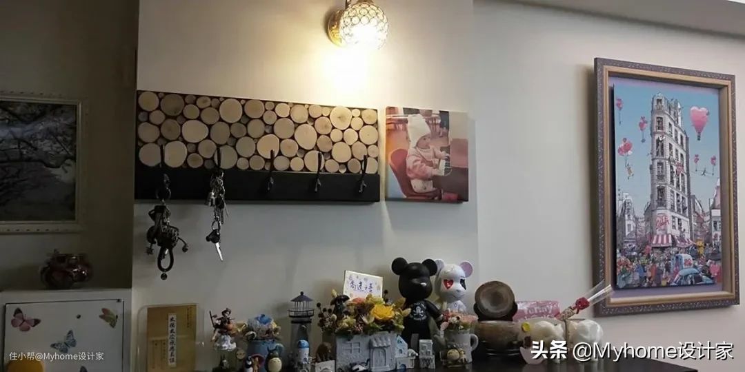 如果不想耗费太多施工时间,也可以到淘宝购买技术门槛较低的壁画、电表箱盒或是木制钥匙架来修饰电表箱,简单挂上去就能成为居家的美丽风景。