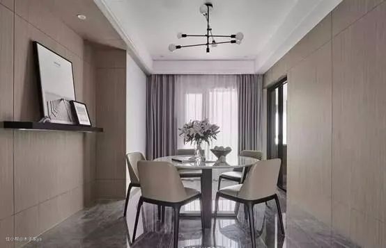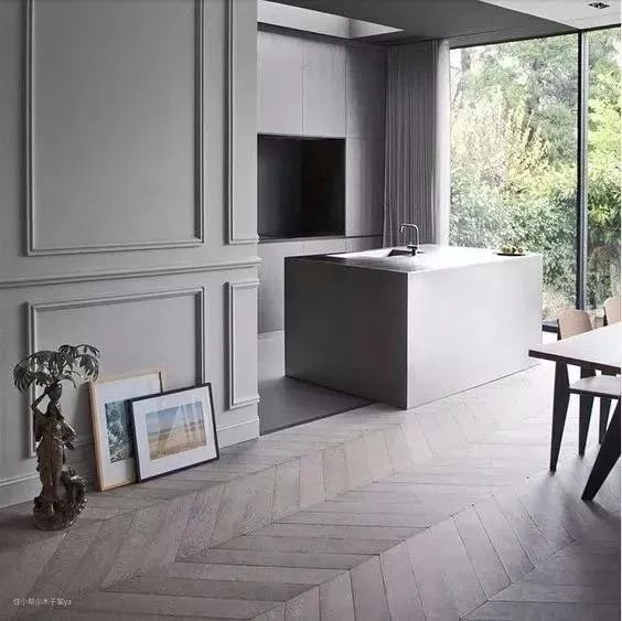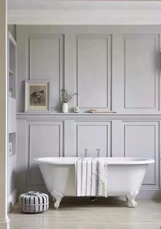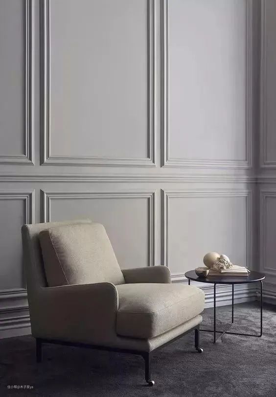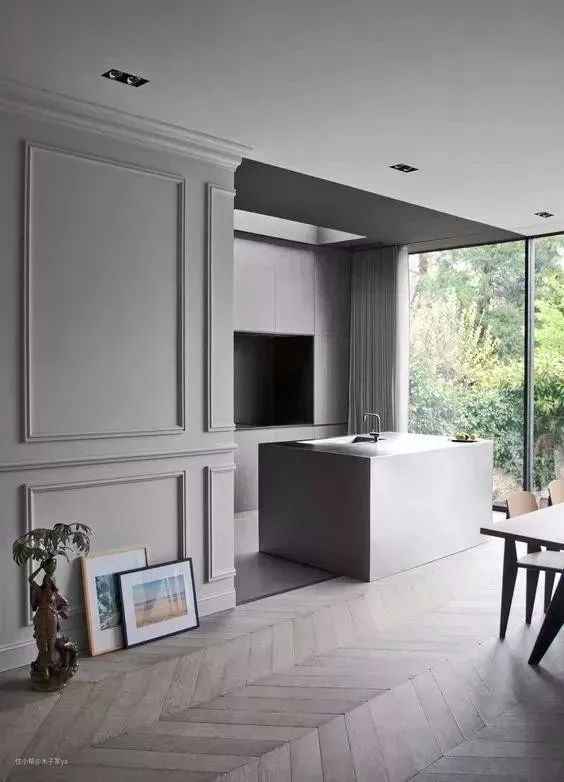 高级灰的护墙板色,中性色能兼容各种风格的家居设计,比单一大白墙高级很多。