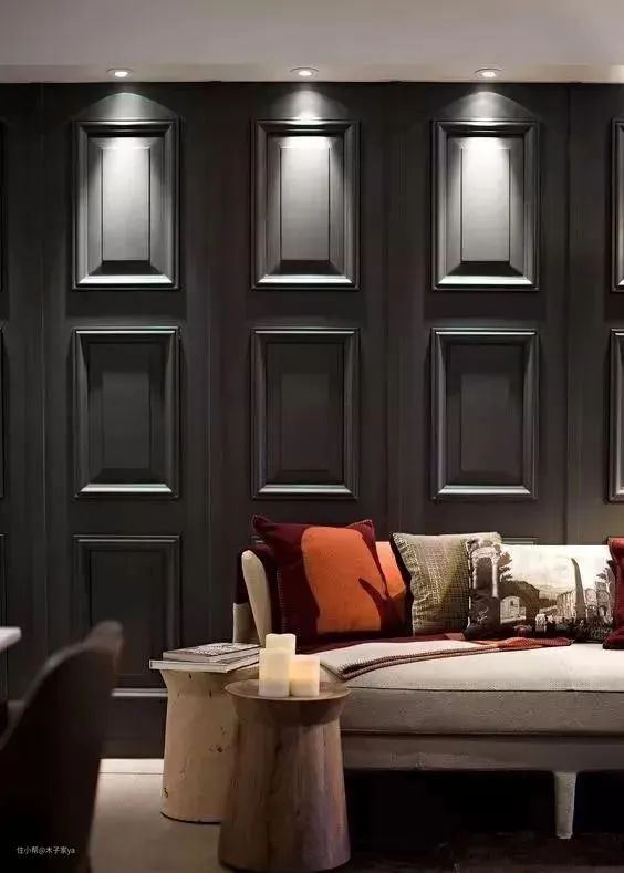 轻奢风格、工业风格等很适合家里做黑色护墙板,显得神秘感强,不过家里光线要充足,不然会显得压抑哦。