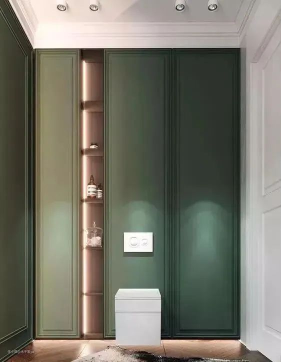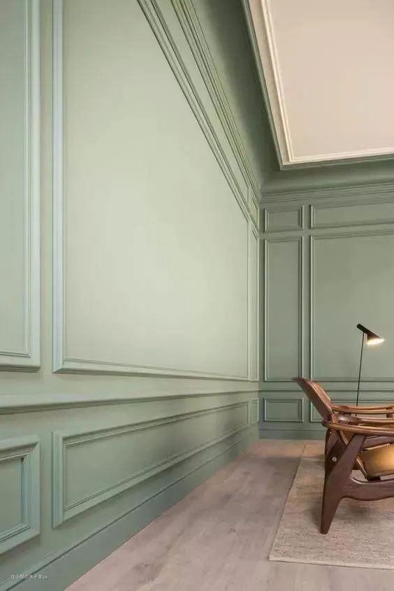 喜欢小清新绿色的你可以考虑做绿色护墙板,莫兰迪绿色超级清新舒服,很适合搭配各种风格的家。