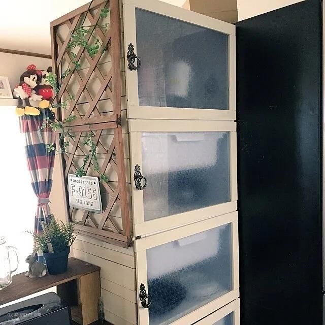 这位用户活用收纳柜制作成橱柜。通过增加开门,变身为真正的餐具柜。