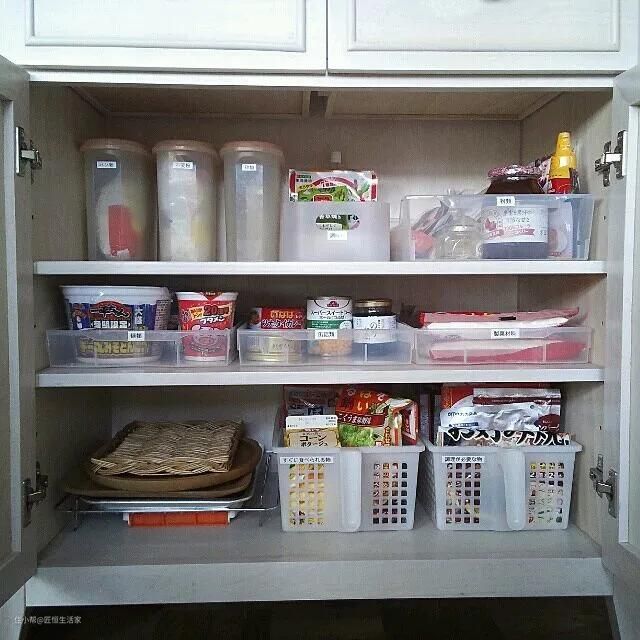 将食品分好类放进存储盒里,同时贴上标签,知道在哪里存放了什么东西。另外,据说用户还制定规则“一个商品只能囤一件”,这样就不会买太多食品存货。