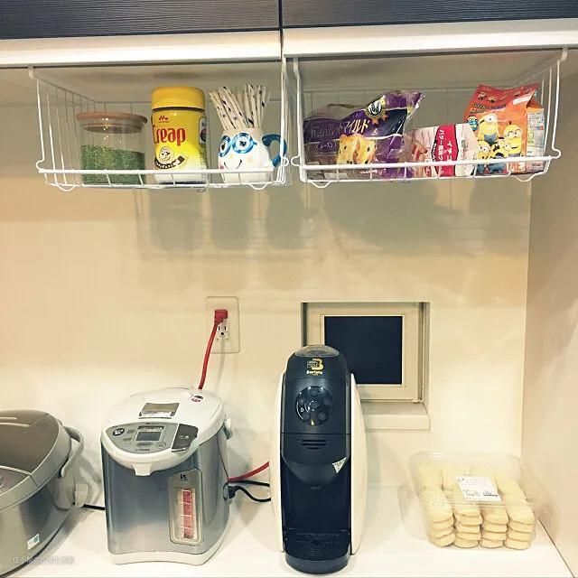 厨房吊柜下安装这种网架,可实现随即取出的方便收纳。这位用户使用的CAINZ的网架,还可以堆叠起来。
