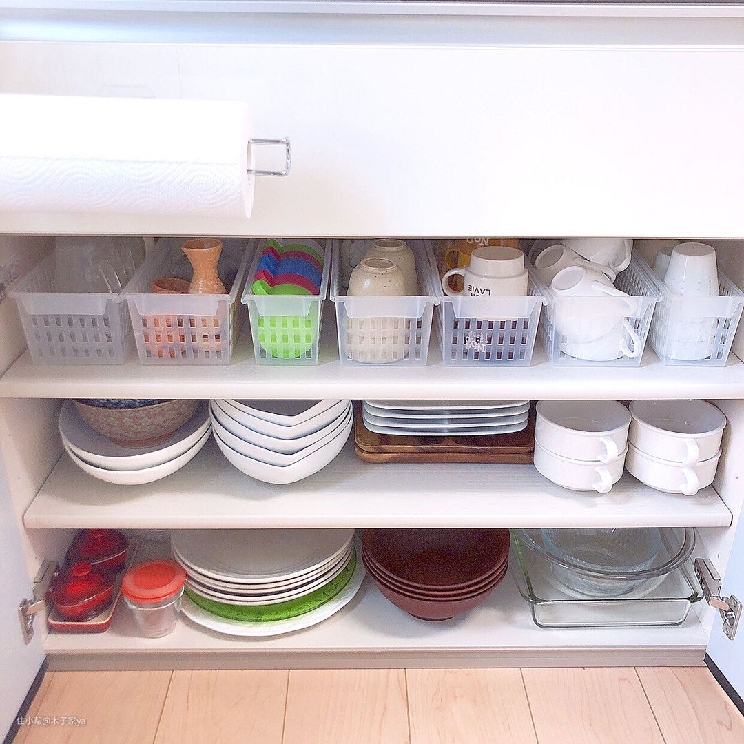 台面空无一物,很多餐具物品都收纳在橱柜里面。