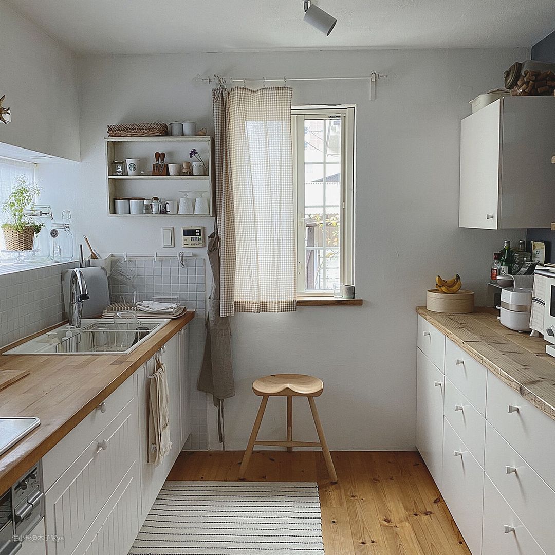 个人超喜欢这套ins风格的厨房,实木地板超级有感觉。