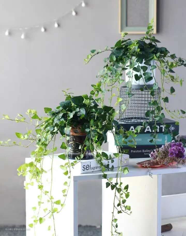 常春藤叶形美丽,四季常青,好似一个活泼可爱充满灵气的姑娘。可以摘一株置于案头进行点缀,也可以作为吊盆悬挂垂绿,还能任其在花园和阳台墙壁自由蔓延,自然生长。