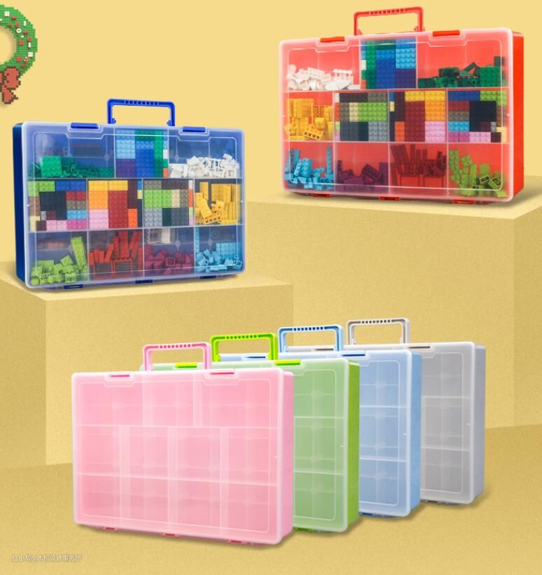 分格收纳盒可以代替破损的纸盒收纳小粒玩具,如乐高、彩泥罐等。