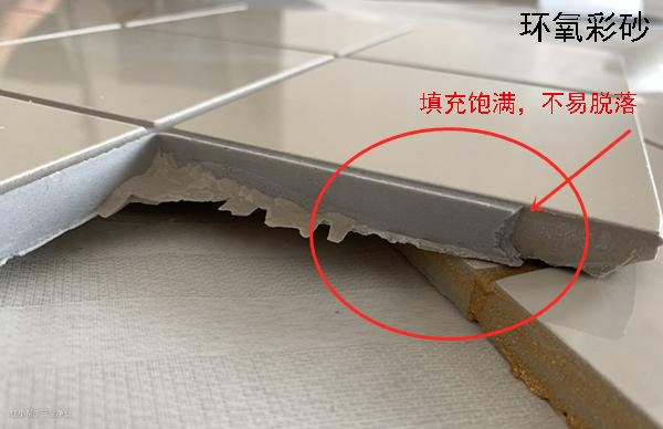 另外,环氧彩砂由于硬度很高,有可能导致瓷砖在热胀的时候没有伸展空间,从而相互挤压起拱。