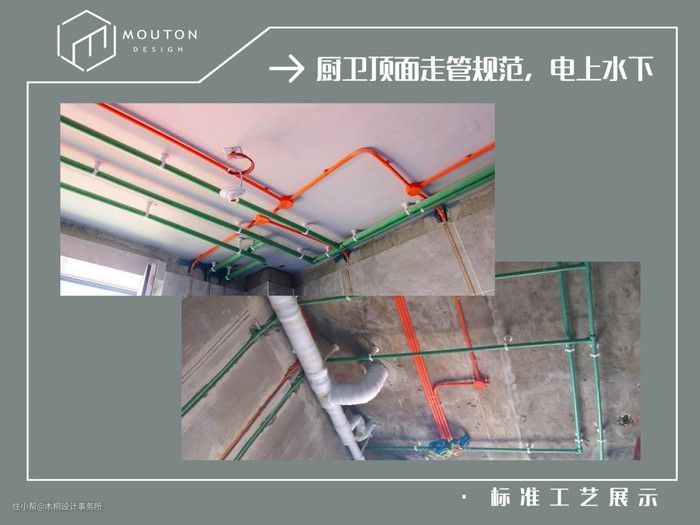 1、厨卫水电必须走顶,同时必须电上水下