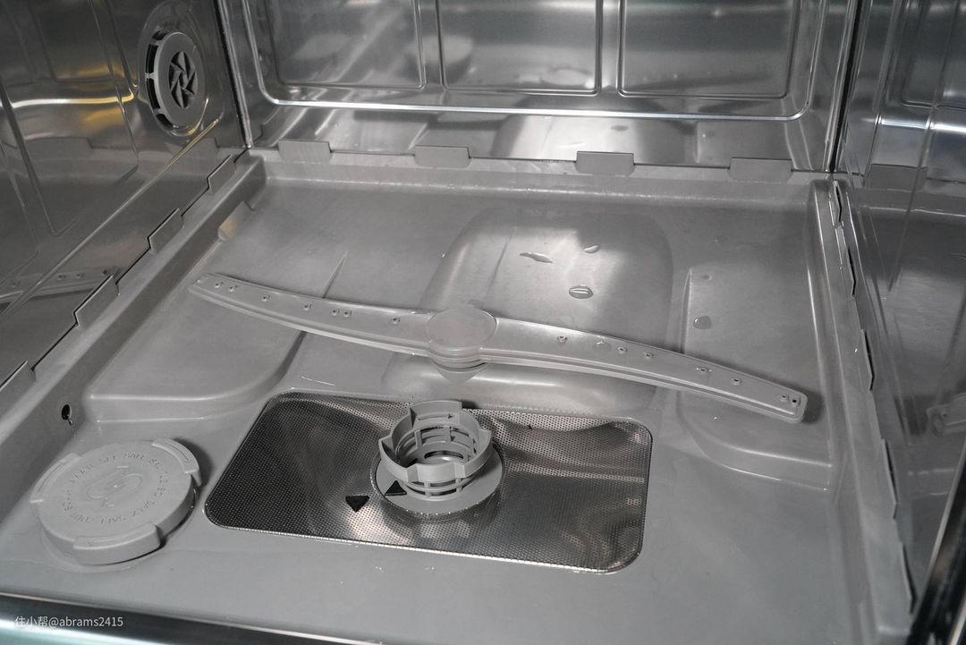 ▲首先说下这台西门子台式洗碗机水压;BLDC水泵只需负责一个底部喷水摇臂,而无需同8套那样需分流一半水压给上层喷水摇臂。因此从听到的冲刷力度上感觉水压比8套洗碗机大的多。水压大+配合靠谱的洗涤剂清洁能力应该很强
