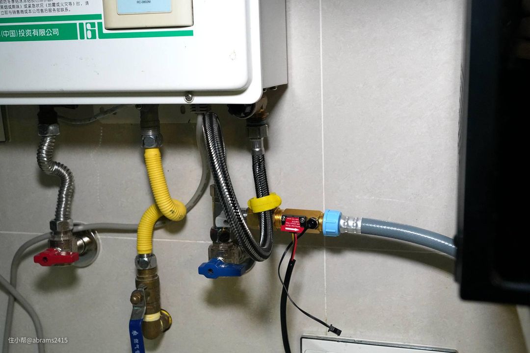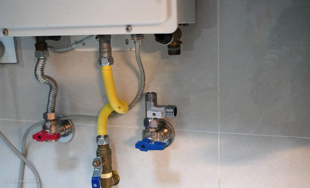 ▲安装完毕的进水水路,燃气热水器和洗碗机互不影响进水