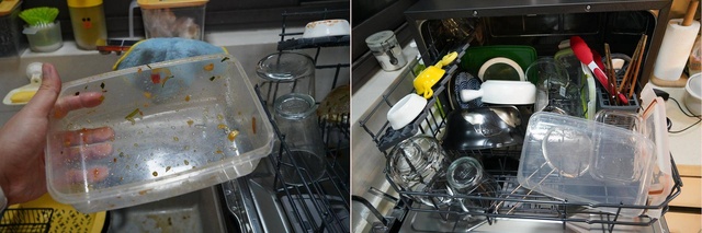 ▲做了一顿西餐,三个人吃产生的餐盘轻松放入台式洗碗机