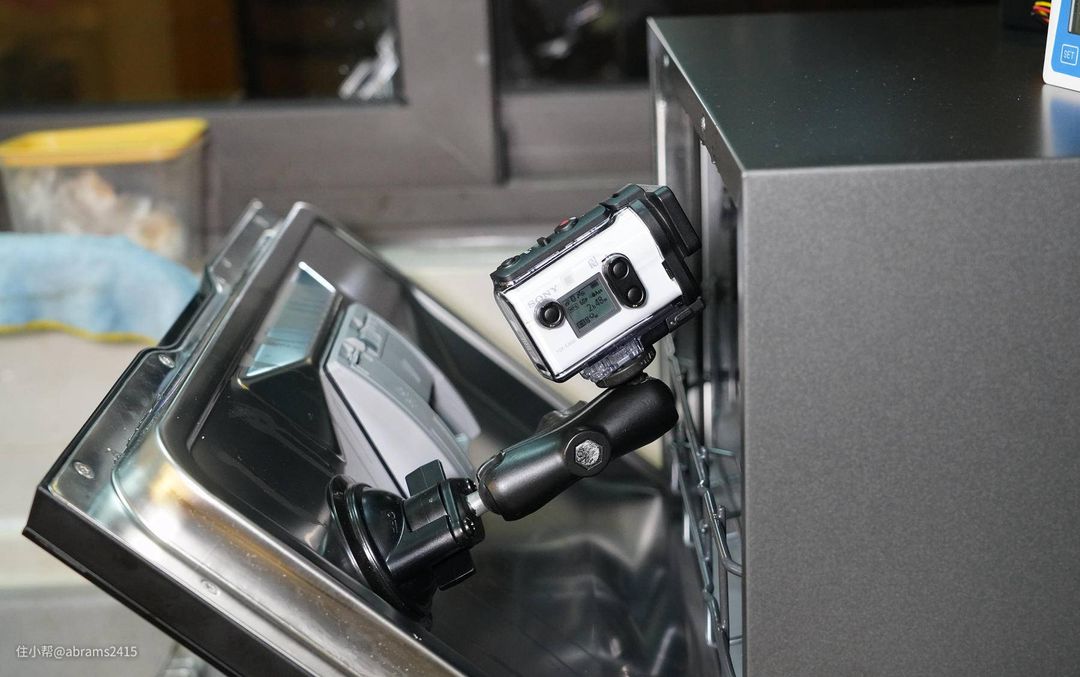 ▲安装了一个SONY运动相机在洗碗机内腔中