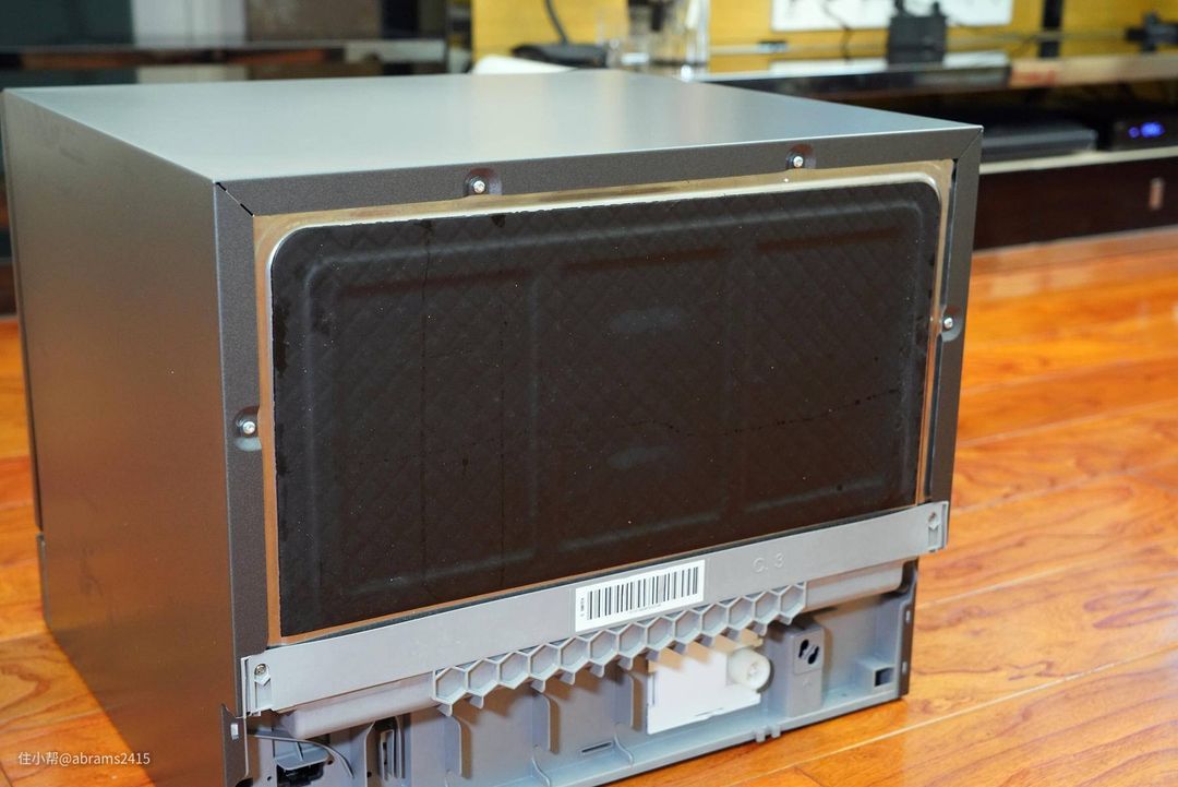 ▲洗碗机后面黑色的是止震胶,削弱水流冲刷产生的噪音。同时也是隔温材料,防止内腔温度散失过多