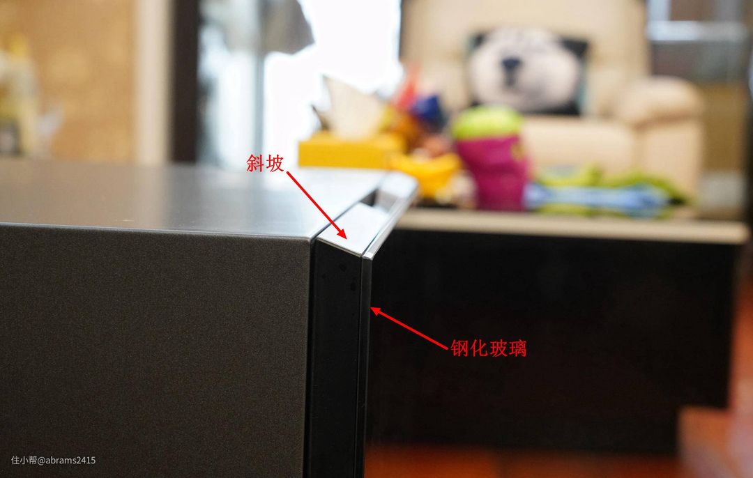 ▲除了正面板采用钢化玻璃外,机身面板是拉丝黑不锈钢材质。使机身硬朗的同时也较容易打理