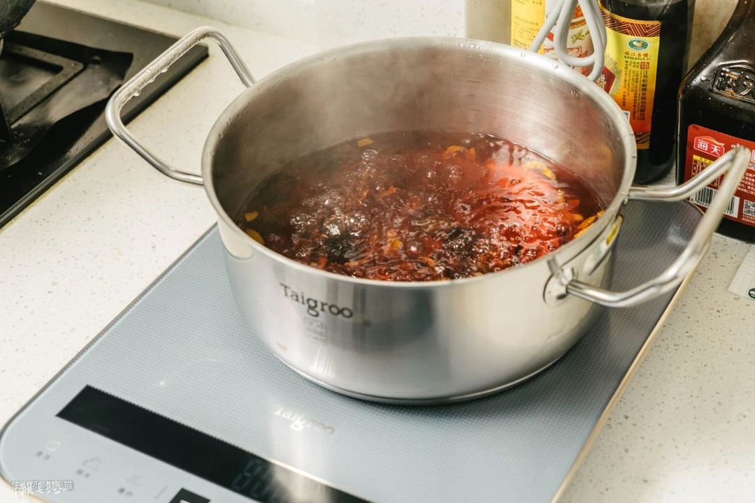 煮好了,过来看看,哇汤色鲜红,气味芬芳,满意!