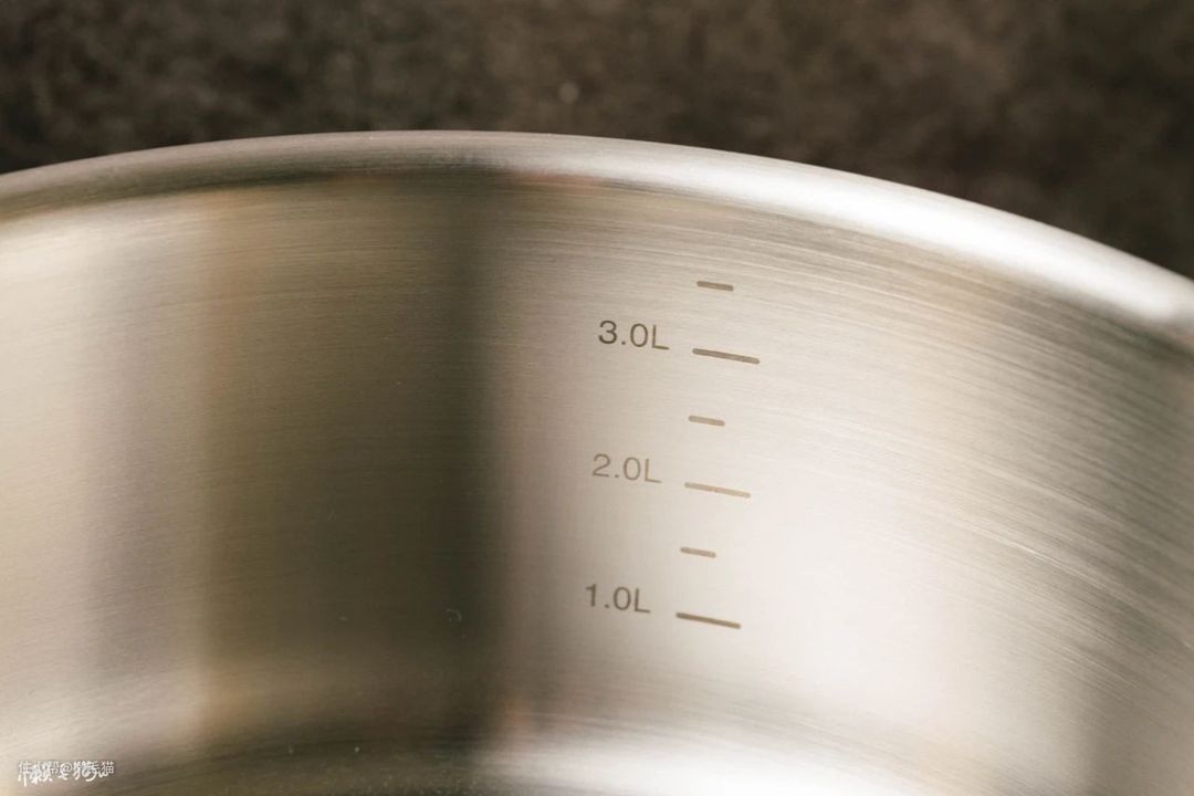 锅边很细心的做了刻度设计,烹汤的时候可以准确掌握水量。