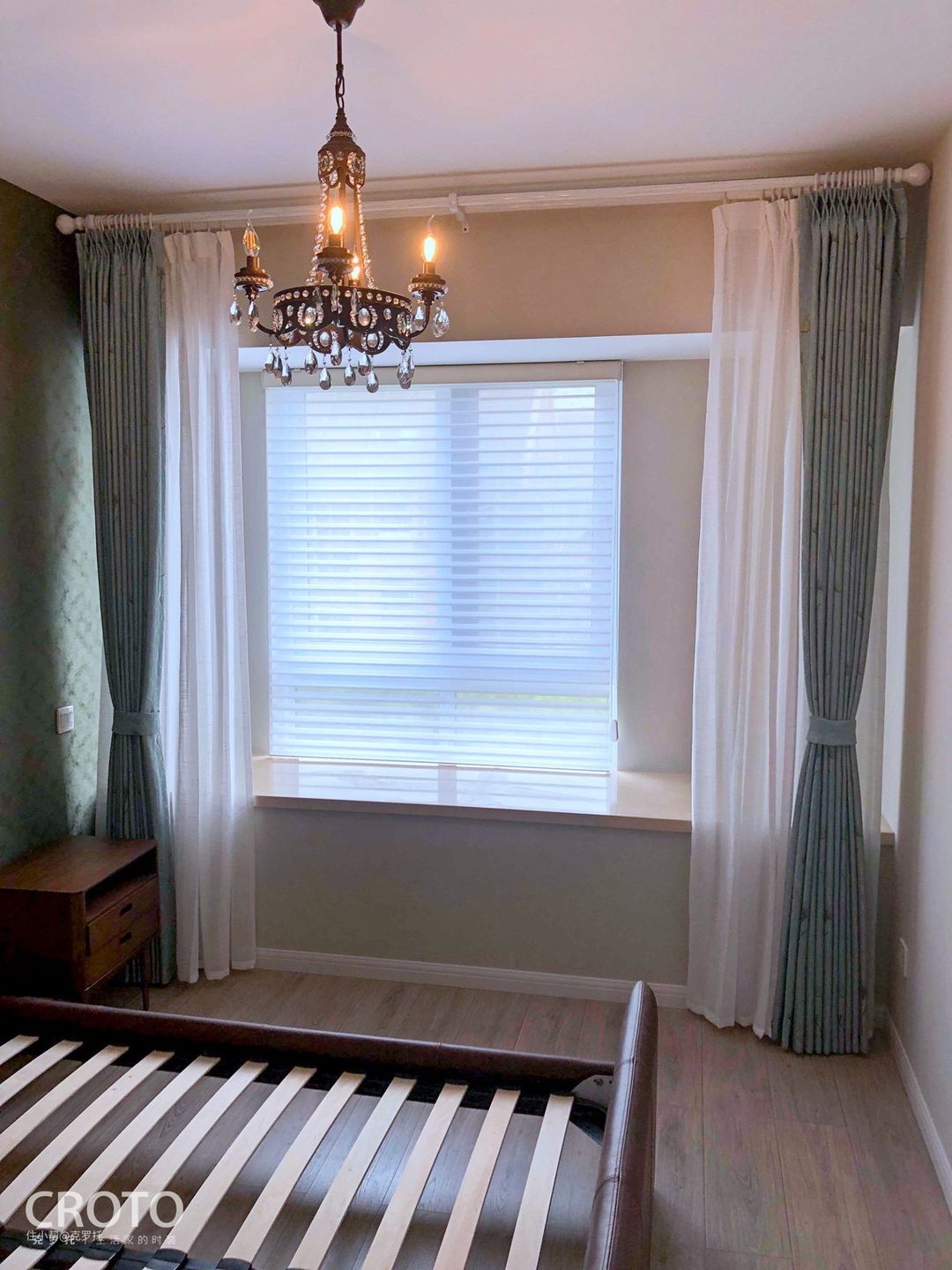 ✅喜欢升降帘的光影效果,又想要遮光效果好,可以升降帘靠窗,布帘靠墙
