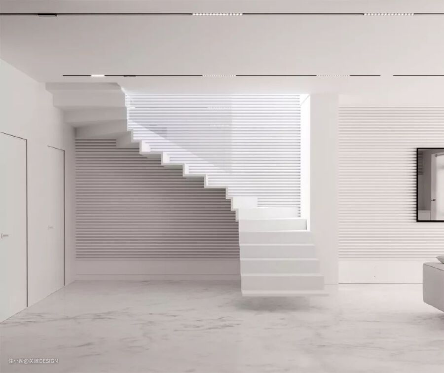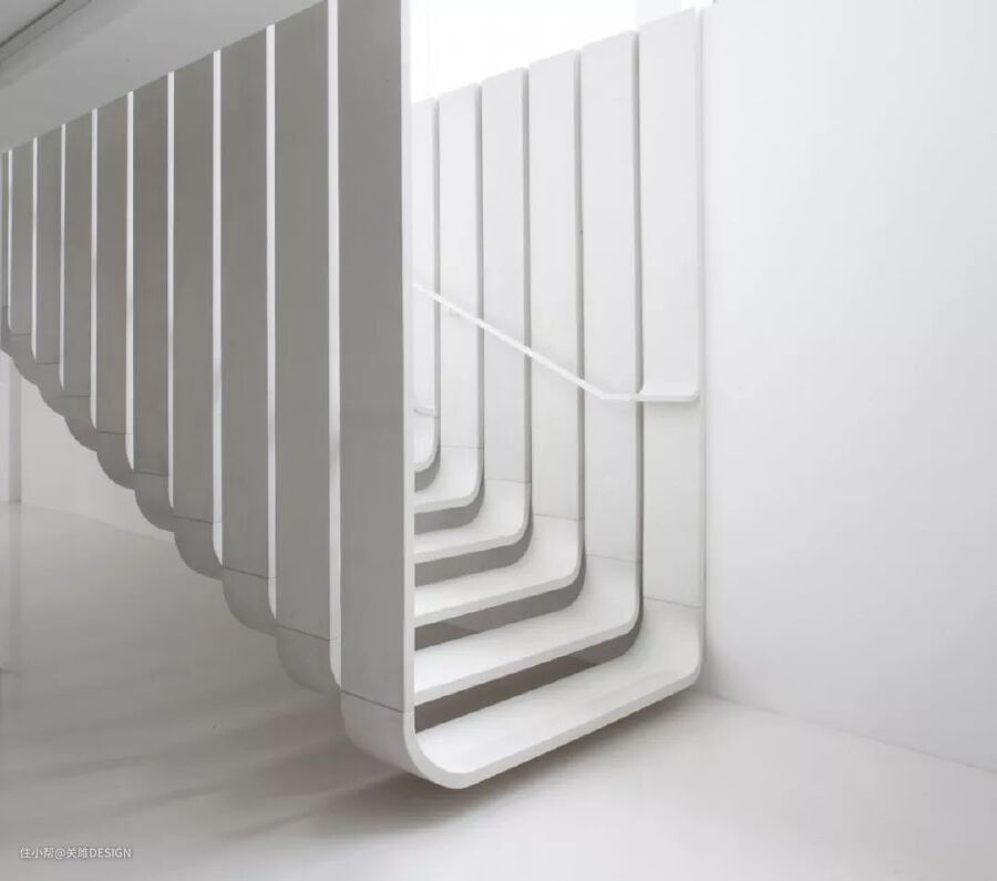 这款悬浮楼梯摒弃了传统楼梯的设计方式,简洁的白色浑然一体你,没有传统的护栏,拥有强大的视觉震撼力,同时完美地阐述了极简主义。