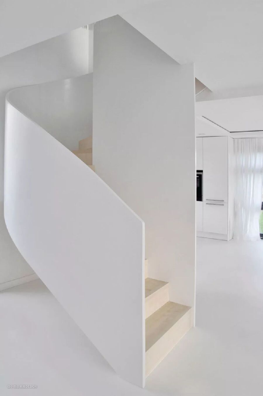 纯白的楼梯搭配从窗户中射下来的阳光,给人一种圣洁和安宁的感觉,精致的曲线极具现代感。