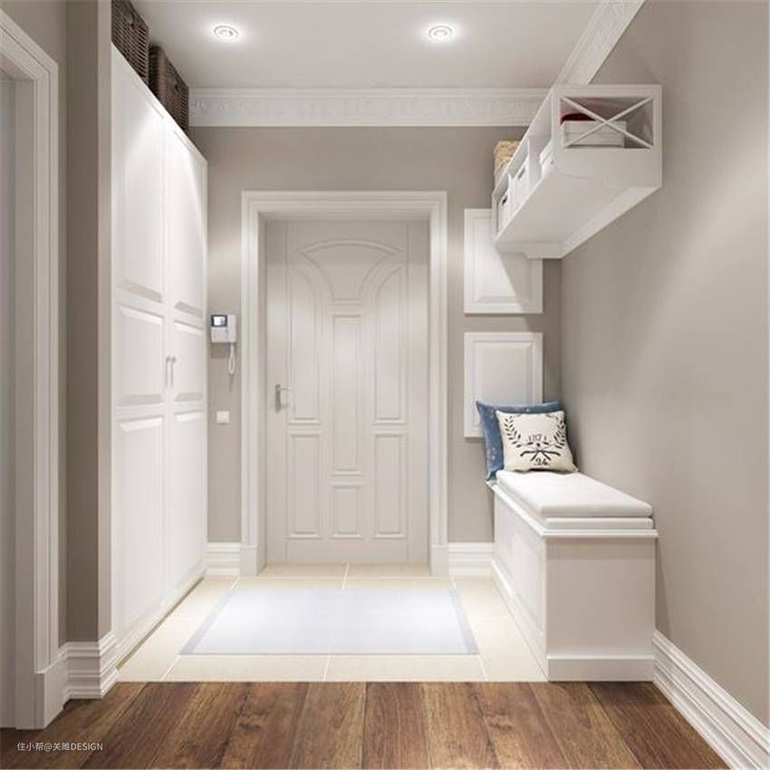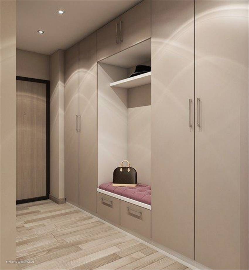 (2)如遇尴尬户型,鞋柜无处摆放,可考虑选非承重墙做嵌入式玄关鞋柜;