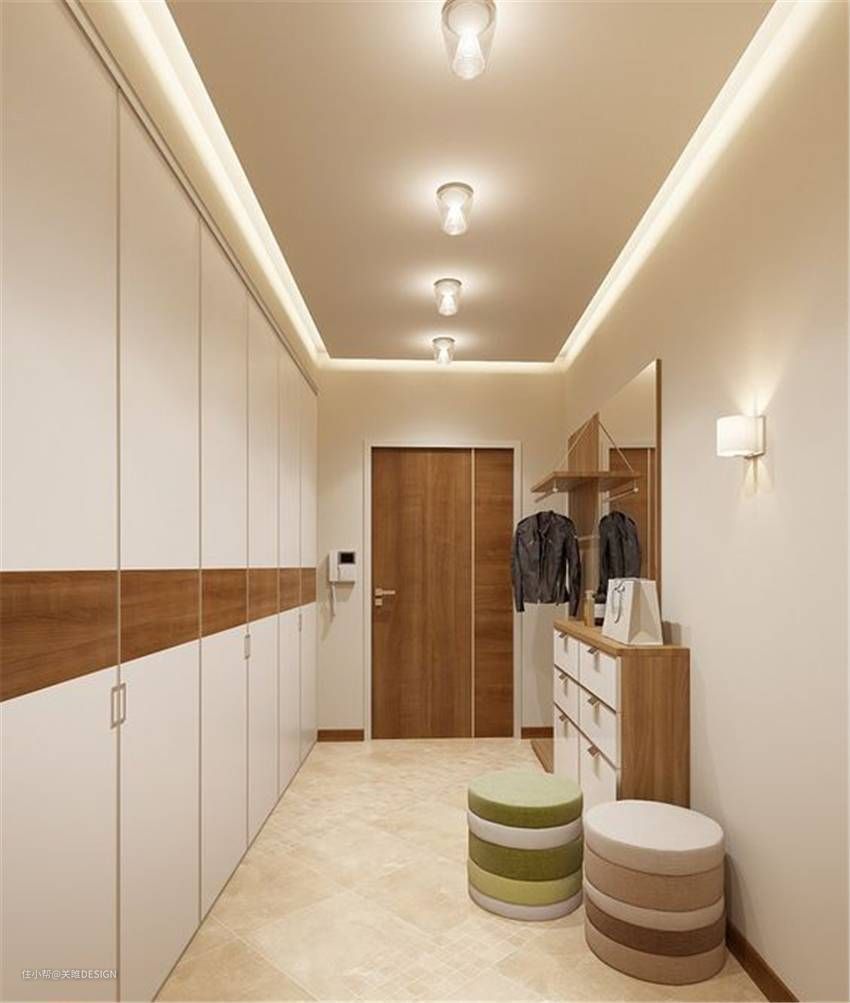 (3)走廊型。鞋柜在侧边,大门正对走廊,此时鞋柜的宽度不宜太大,以免影响过道整体感官。这种直穿式玄关,比较节约空间,小户型内最为常见。