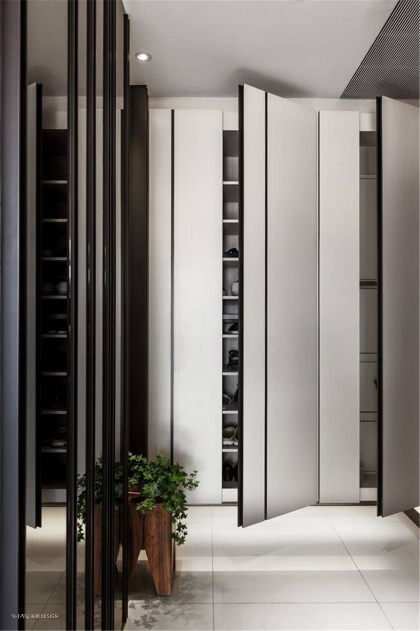 在室内设计中,许多设计师喜欢在玄关处设计鞋柜,以方便业主进门换鞋。而玄关作为入户的第一道风景线,精致优雅的印象自然不可破坏。所以,想要美观与实用二者兼得,就必须依靠“玄关鞋柜”的设计了。