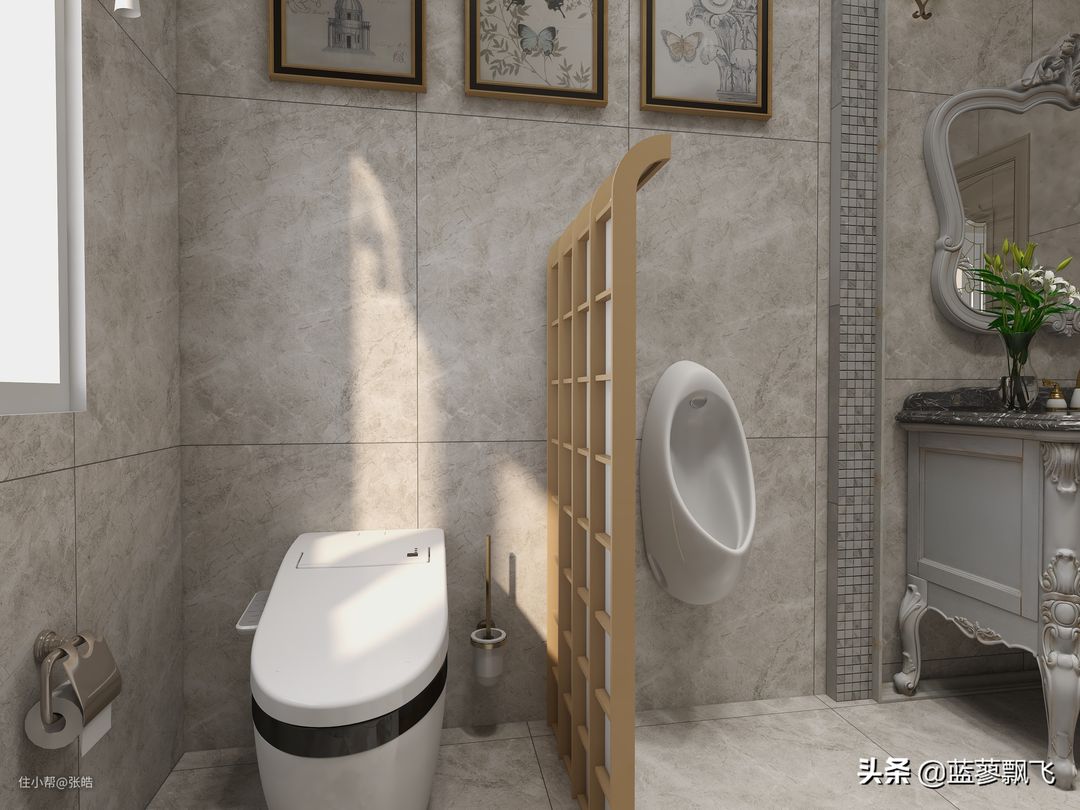 众所周知,家里的卫生间都会安装:马桶、洗手盆(台)、淋浴屏(区),大一些的还会放洗衣机、收纳柜等等,也有一些朋友会选择浴缸,但大多数人不会想到家里的卫生间也要安装小便器。
