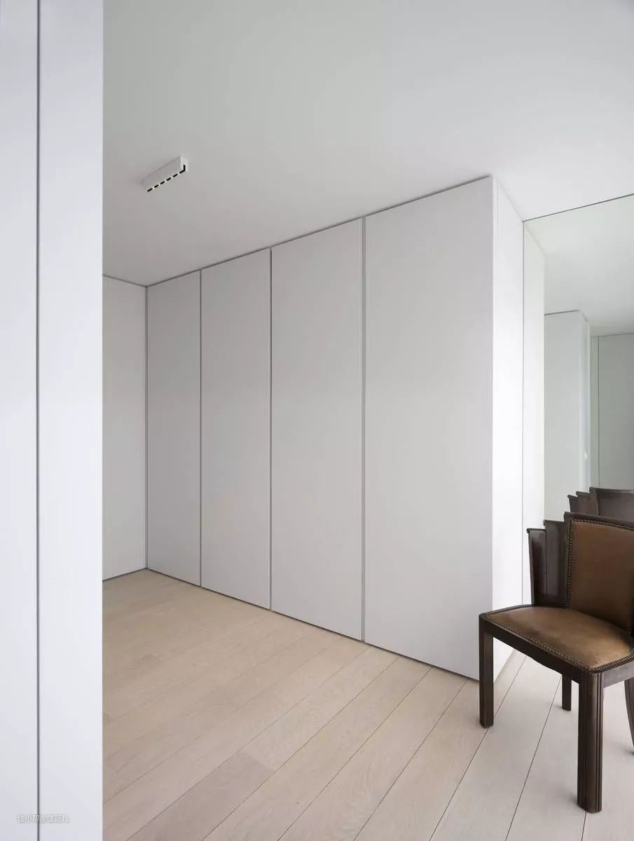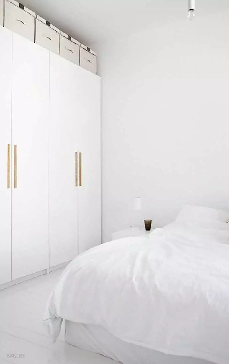 好多国外的家居美图里,卧室显得整洁又宽敞,最主要的原因就是衣柜埋在墙里隐藏起来了,卧室里除了一张床之外就没别的东西,自然显得干净。