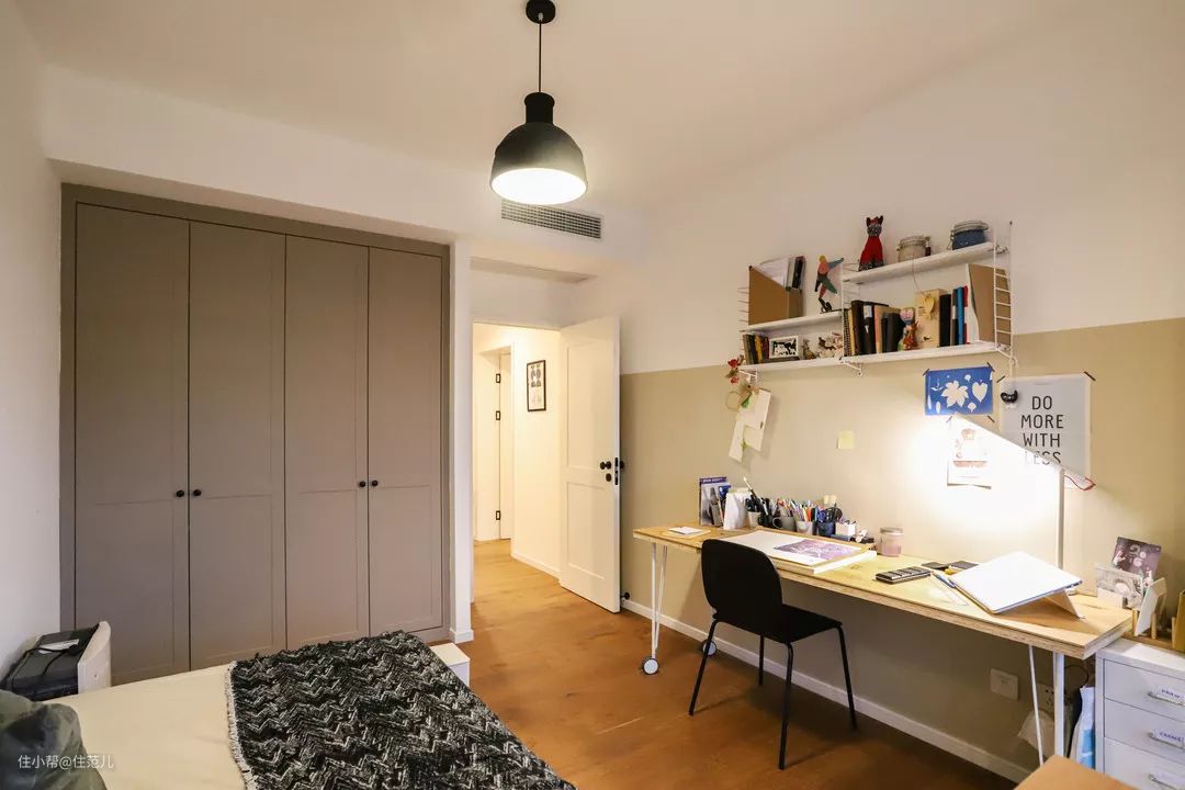 一组成品衣柜要比定制柜更灵活,日后改变房间的用途和布局,甚至还能拆掉搬到别的房间里去。