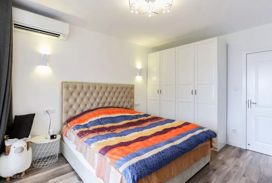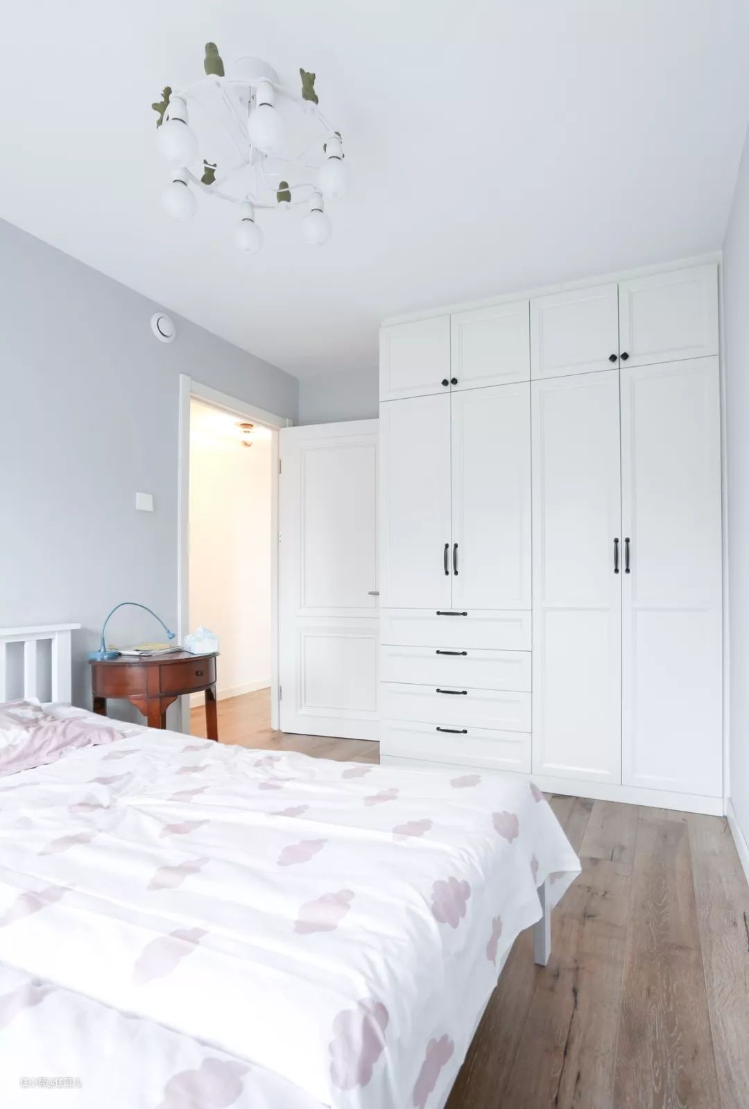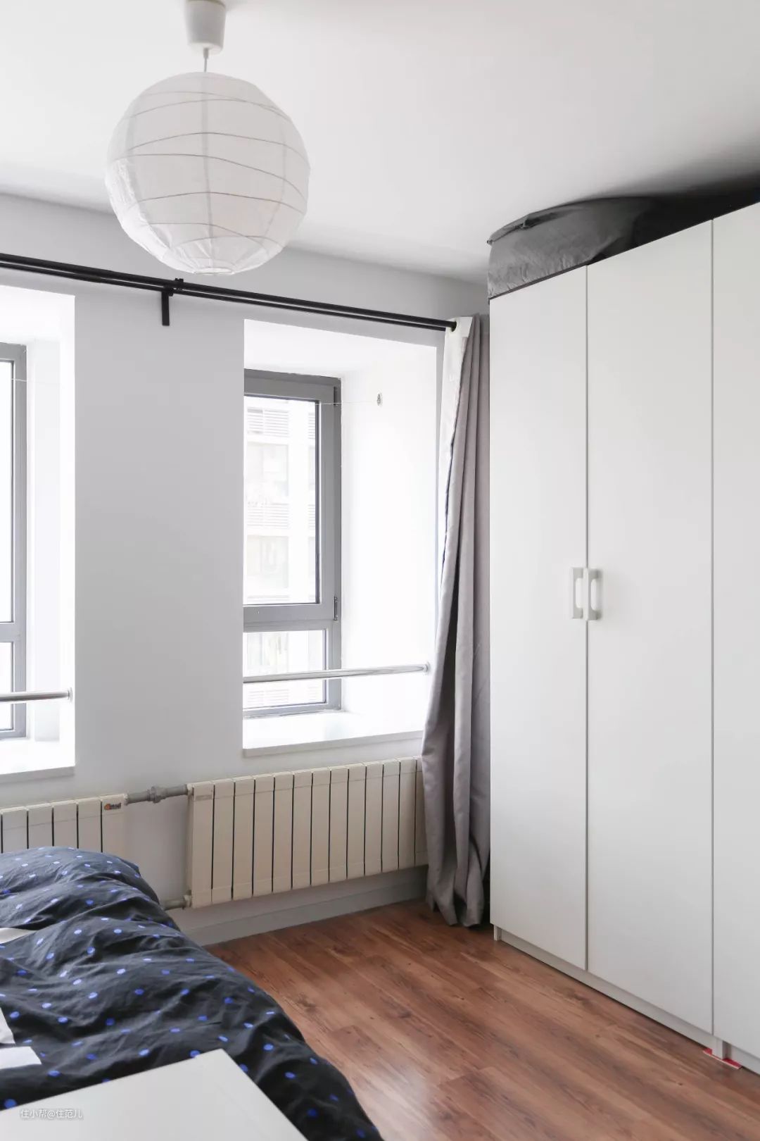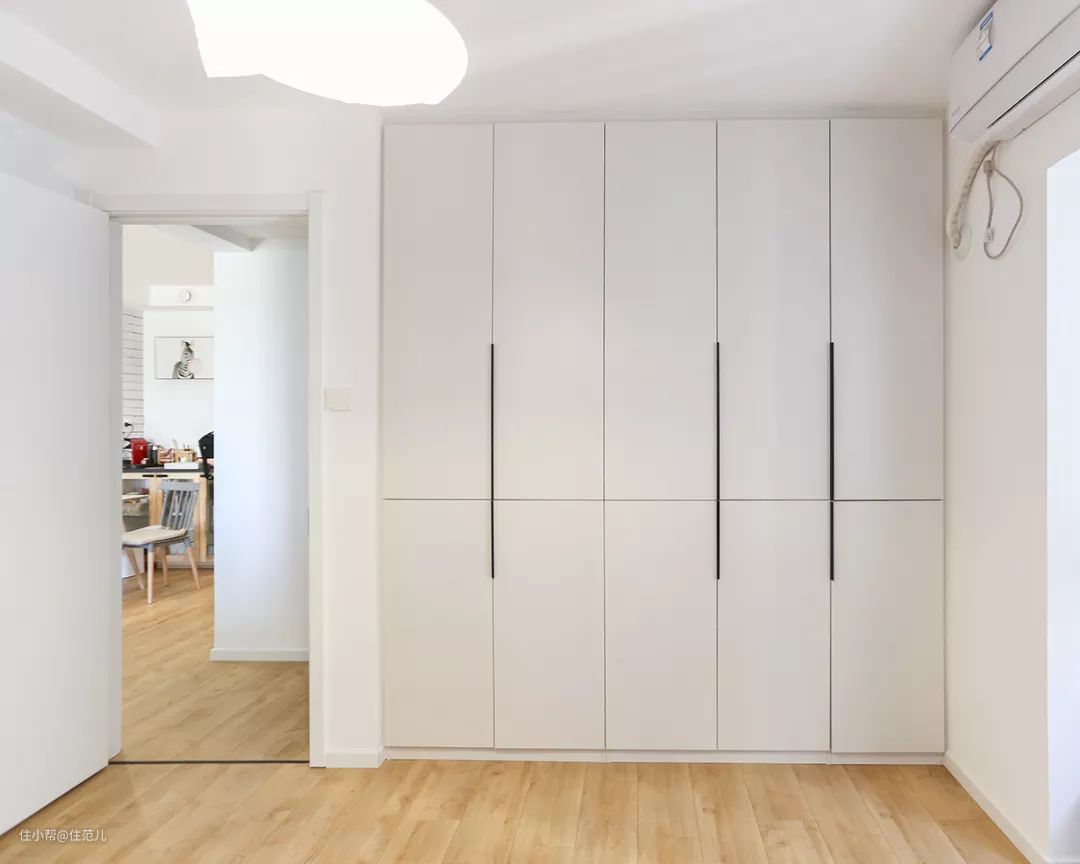 因此对于大部分“小卧大厅”的户型来说,我强烈建议挑选白色的衣柜,这样可以把柜子尽量“伪装”成墙,让屋子显得更大。