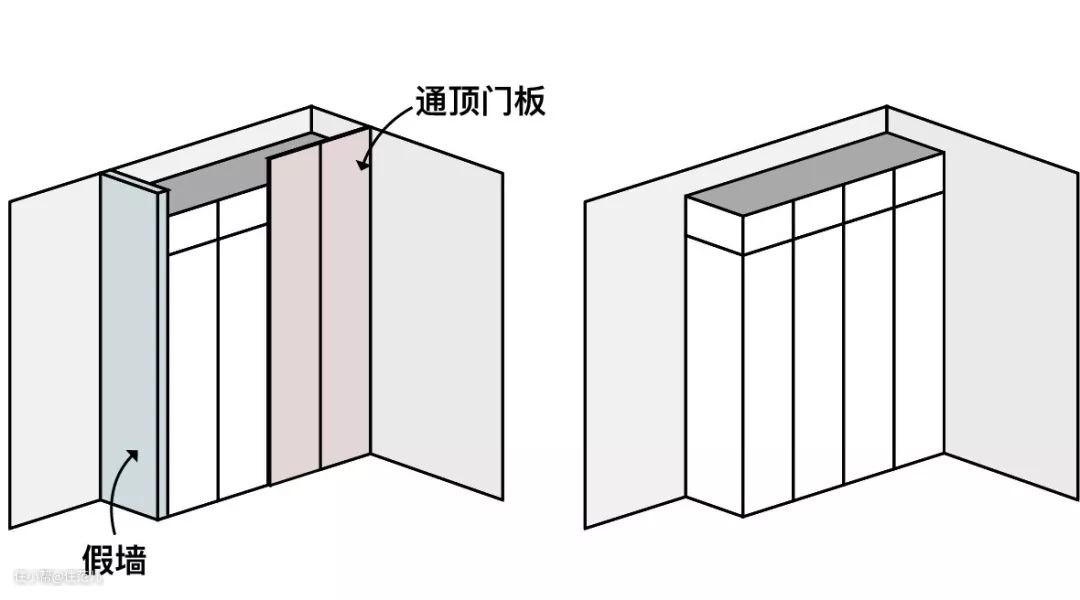 甚至门板可以比柜体高一截,遮挡住柜子和天花板之间的缝隙,伪装成一个独立的柜子。