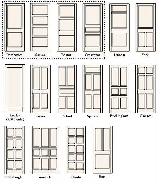 ▲ 常见的框型门形,其中前4种都适合用来当作衣柜门