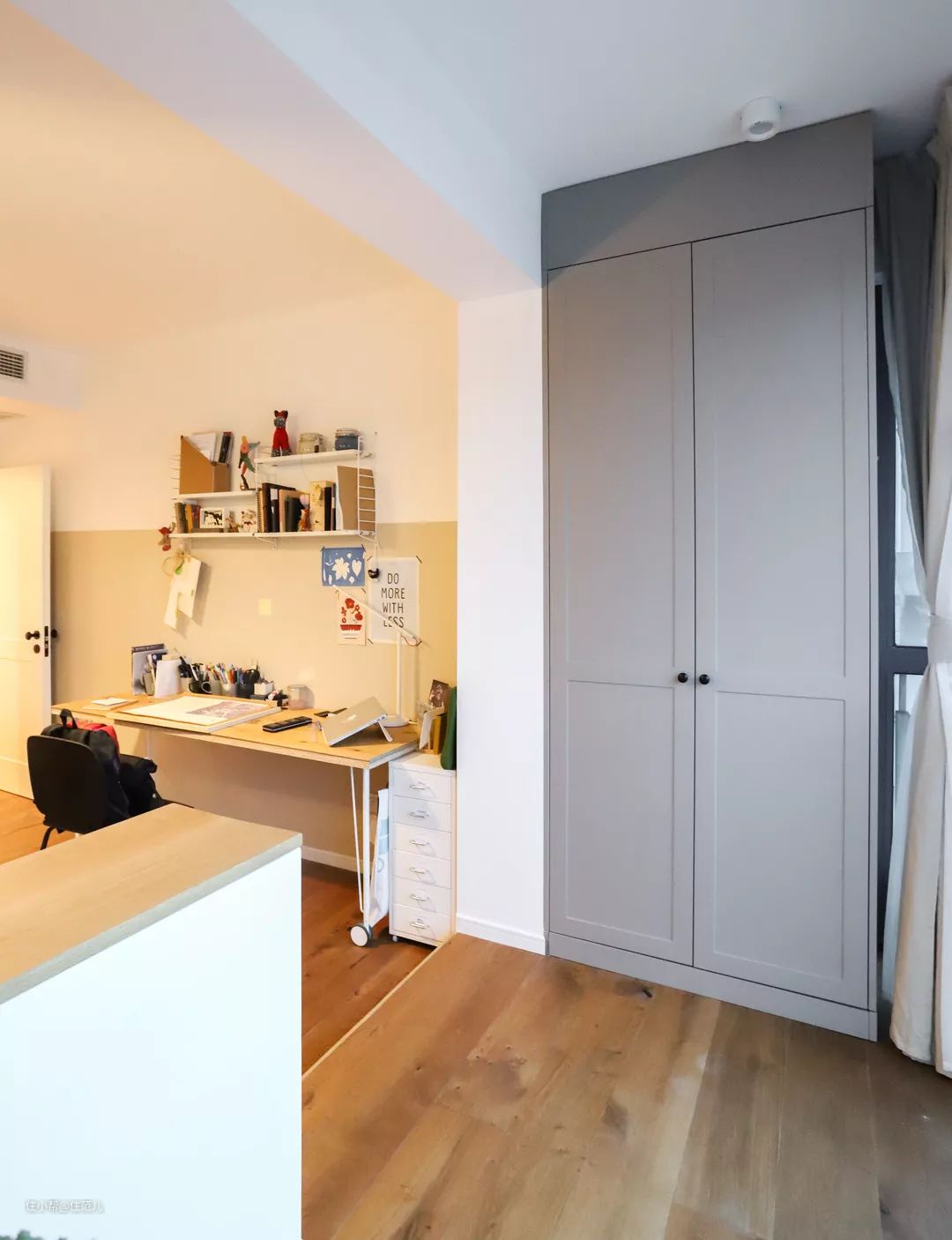 配合衣柜侧面的假墙,根本看不出来里边的柜子只有半截。