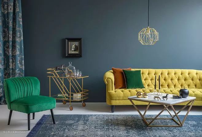 作为点缀色来进行家居搭配,可以很好的提升家居的复古气息,鲜活又不跳脱的色彩,增强了视觉的丰富度,让人感受到温馨气息。作为主色调大面积的使用时,可以凸显出奢华的气息。而局部点缀让空间更加明亮,比如门框、窗框的填涂,沙发的选择,更突出色彩温暖的特质。