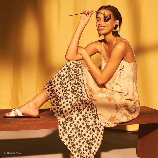 象征着太阳的古金黄与象征着晚的冷调黑搭配,相反色调强调出个性与独特气质。