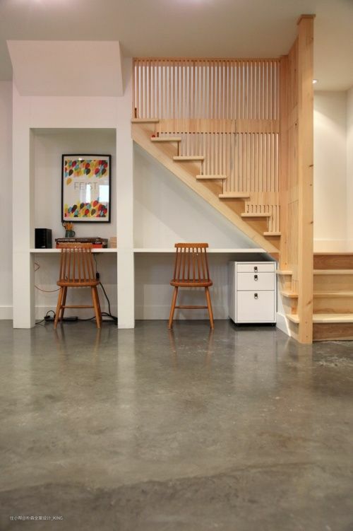 其实除增加储物空间外,附近的功能空间,来定柜体的用途,比如说楼梯旁边是书房或者学习区,那么我们可以考虑将楼梯下方区域设计成书柜,你就可以让这个不起眼的小角落变身成创意收纳空间。