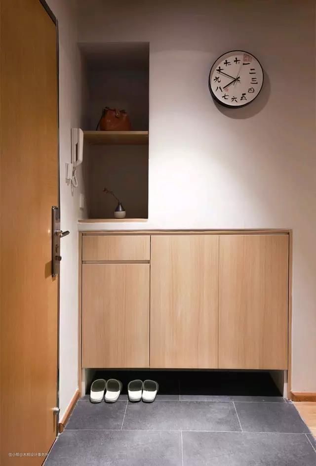 特别是玄关部分的鞋柜,是做嵌入式柜子最佳的地方,玄关部分走廊,宽度一般都不大,这样做会让入户空间更加宽敞和舒适。