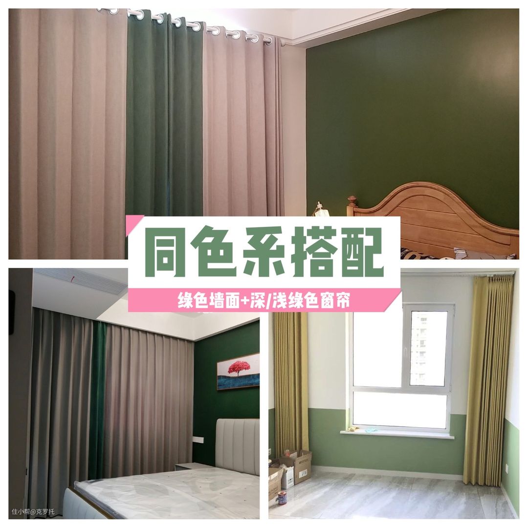 一、同色系搭配——绿色墙面+深/浅绿色窗帘