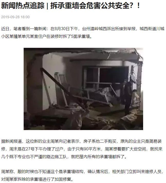 以下是两则因擅自拆改承重墙而导致公共安全隐患的真实案例: