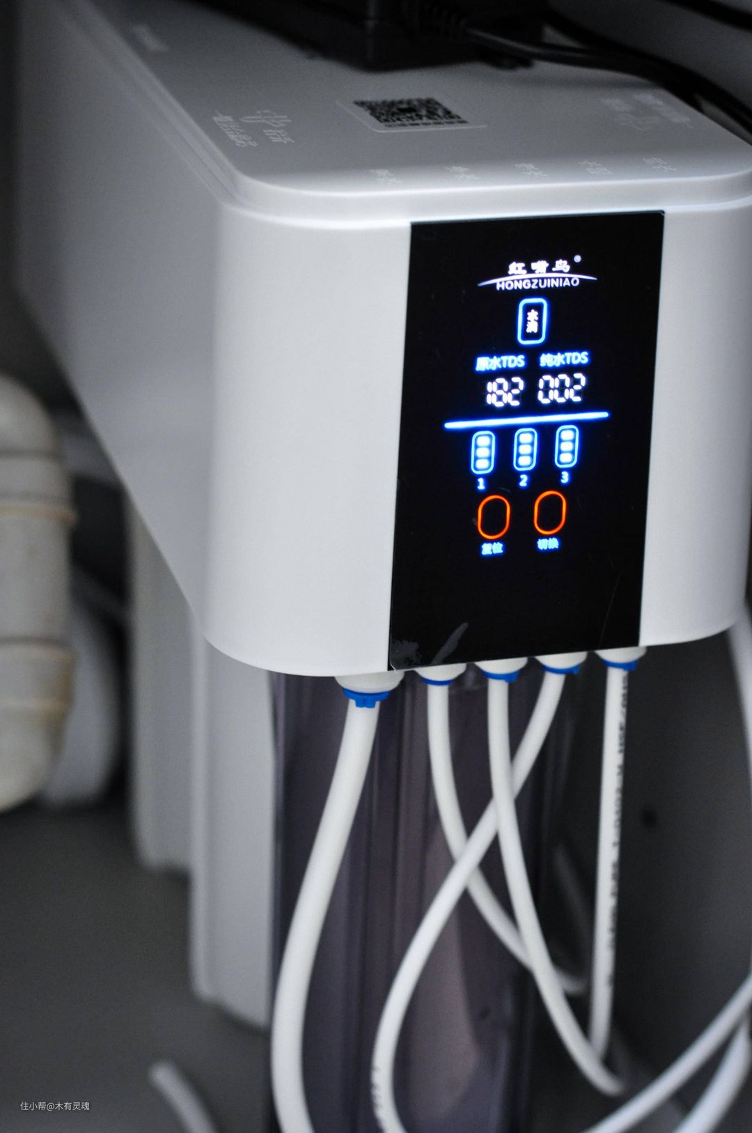 水驱:加配了管线机和净水器组合还有一个问题,就是开机第一杯水TDS过高的通病。知乎专题文有分析过,红嘴鸟家自己有个专利,通过带压力的水驱在停工后持续加压形成纯水环境,解决第一杯水TDS过高的问题,代价是会提升一点点废水比,对我来说是个刚需,必须入。