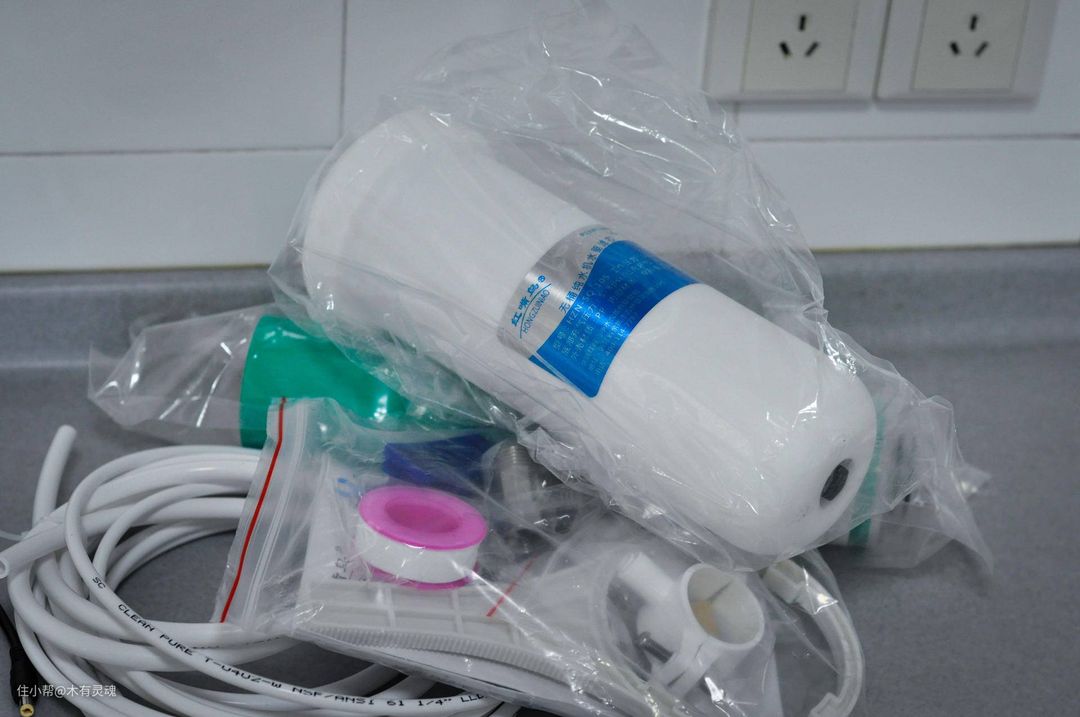 另外一个箱子里是水驱和滤芯,水驱算是他们家的特色产品,其实就是通过压力在关机后加制纯水,缺点是比较废水,优点是能解决开机第一杯水TDS过高的问题,也能加强RO膜寿命。