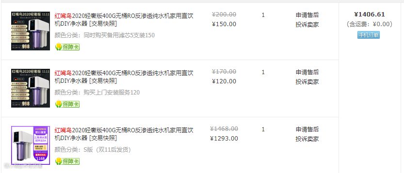 没想到,第一件剁手的物件,却是一位老朋友了——张大妈家的网红,我之前原创的主角,红嘴鸟净水器是也。剁手的出发点还是家里领导督促。喝惯了净水,怎么喝都觉得公司里的水一股自来水味,还带铁锈味。和几个家里装了净水器的朋友聊天,发现还真是由奢入俭难,想想红嘴鸟上一台服役一年表现十分良好,这次毫不犹豫得选择了2020轻奢款,升级了600G,加装了水驱双龙头管线机,那叫一个酣畅淋漓。