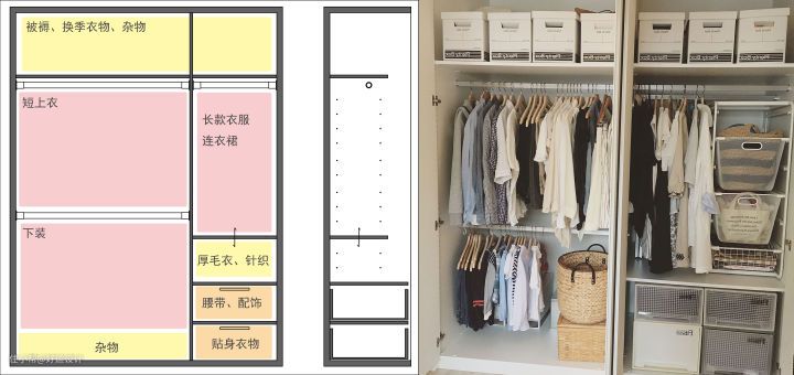 是不是很惊讶,同等大小的衣柜,按照不同的规划方式竟能产生4倍的容量差。