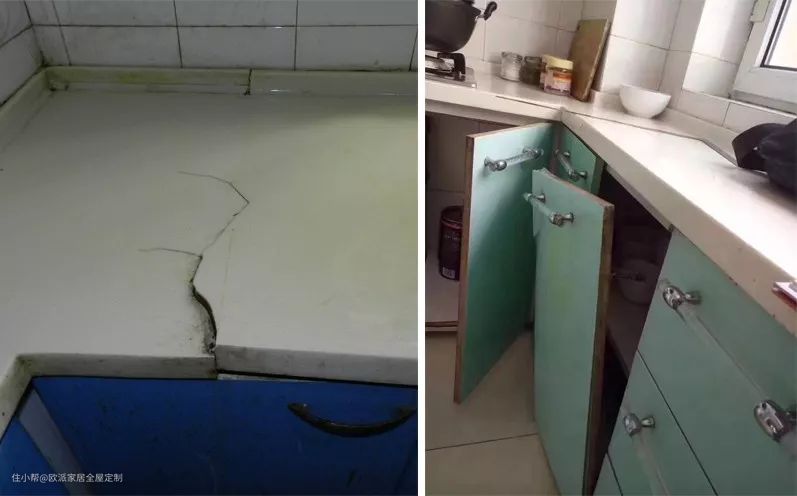 重则台面开裂、柜门掉落↓