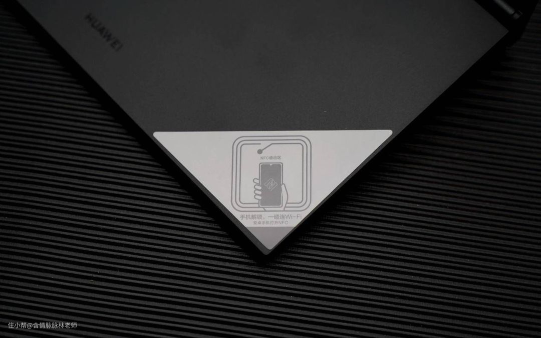 ▲AX3 Pro正面设置了一个Hilink连接按键。同时NFC一碰即连设置的边角,专门用线圈的图案备注了NFC的位置,而天线上则是印刷了WiFi6+,这个+是相对于市场的一些80M频宽的产品,华为的AX3 pro则是支持160MHz超大频宽,速度是WiFi6 80MHz的两倍。